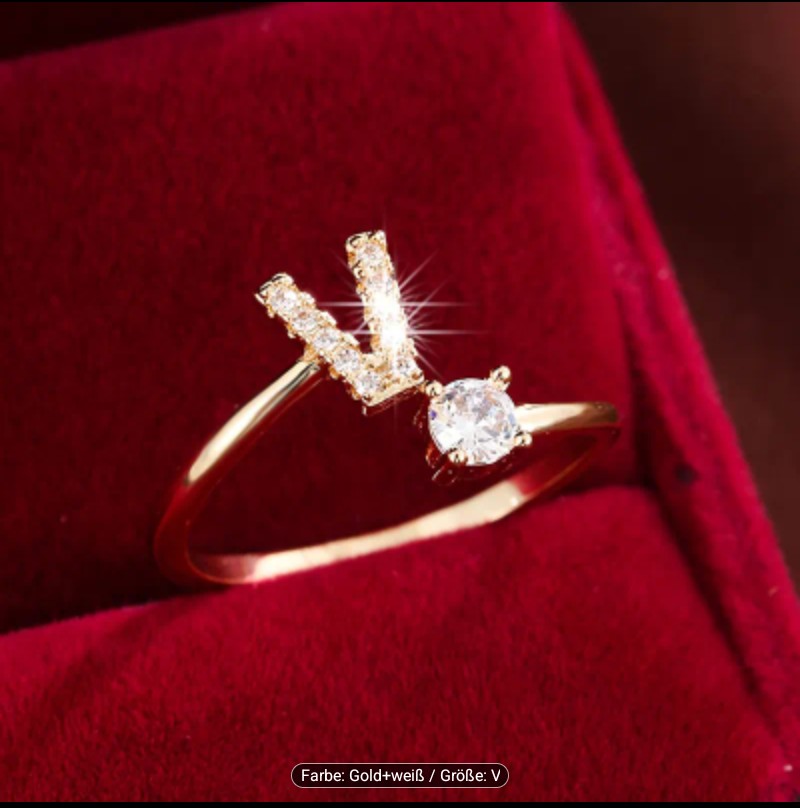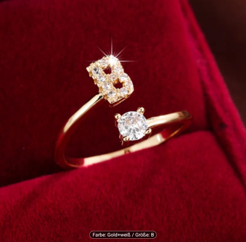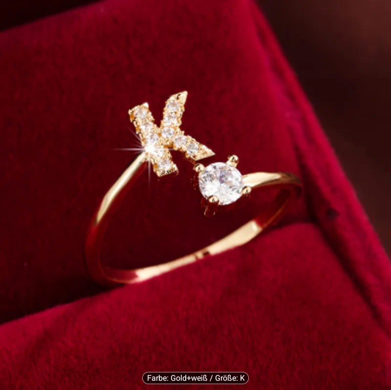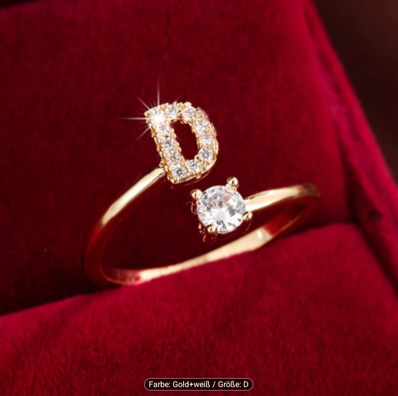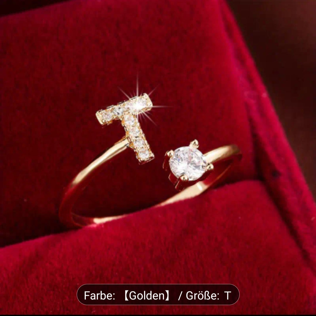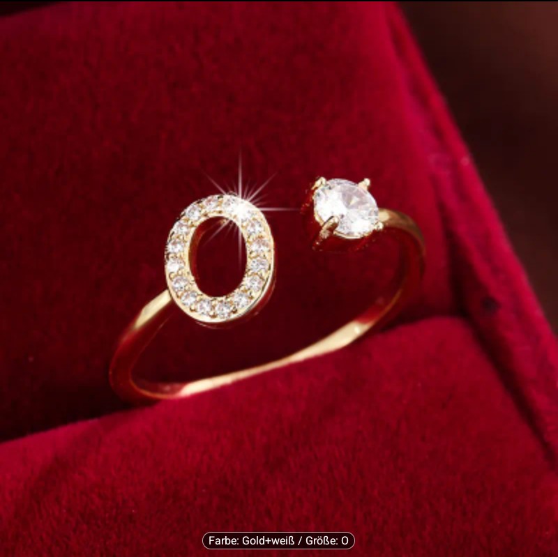 Ein eleganter Damenring mit edlem Buchstaben-Design, funkelndem Zirkonia-Besatz und verstellbarem offenem Band-zeitlos und persönlich